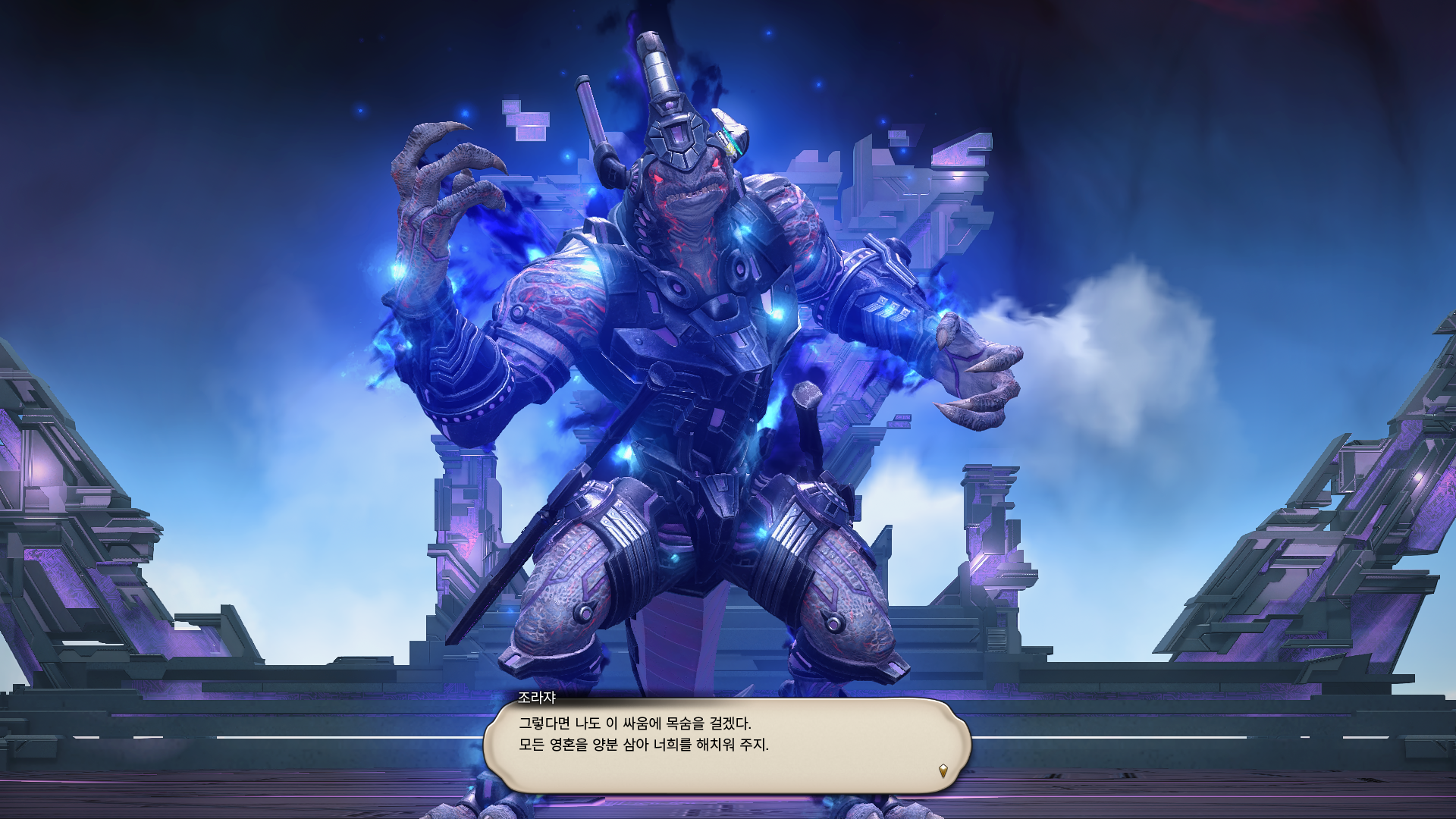 영혼 자원을 소생에 쓰지 않고 모두 힘으로 바꾸어 전력을 다해 싸우겠다는 조라쟈.
