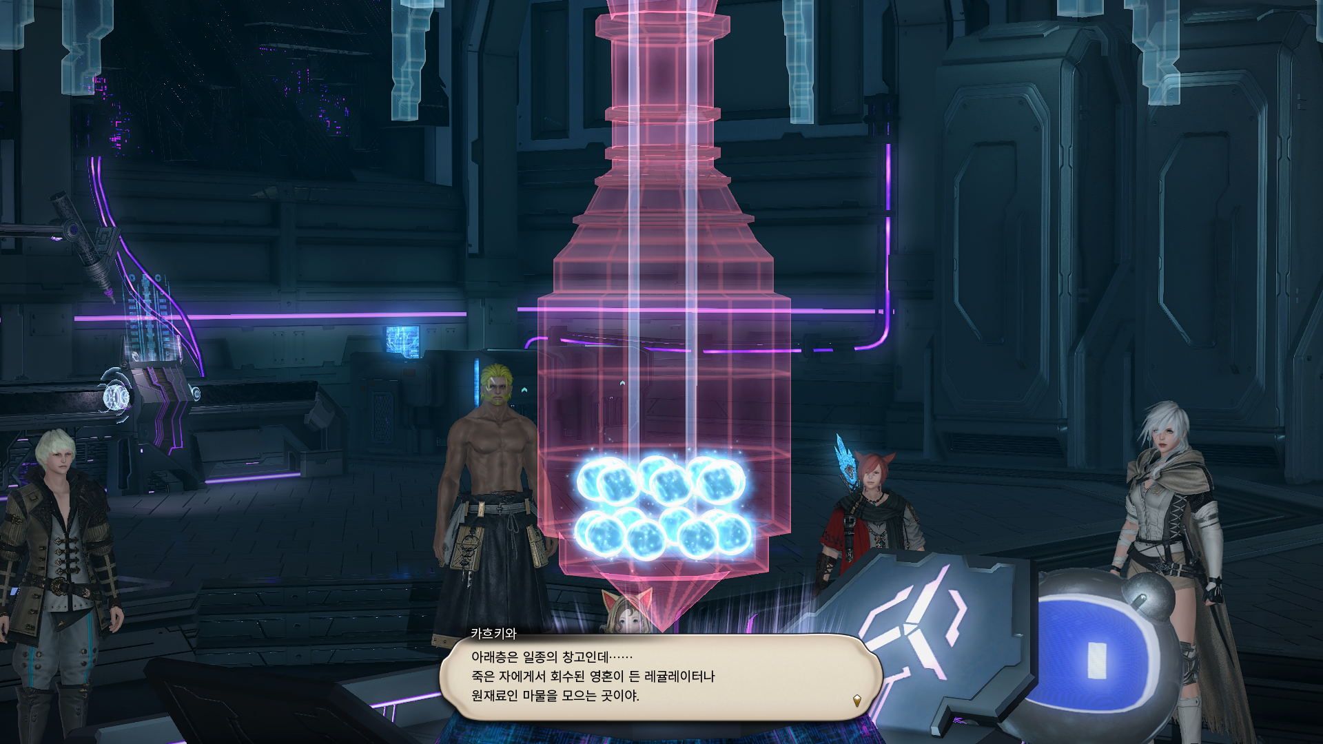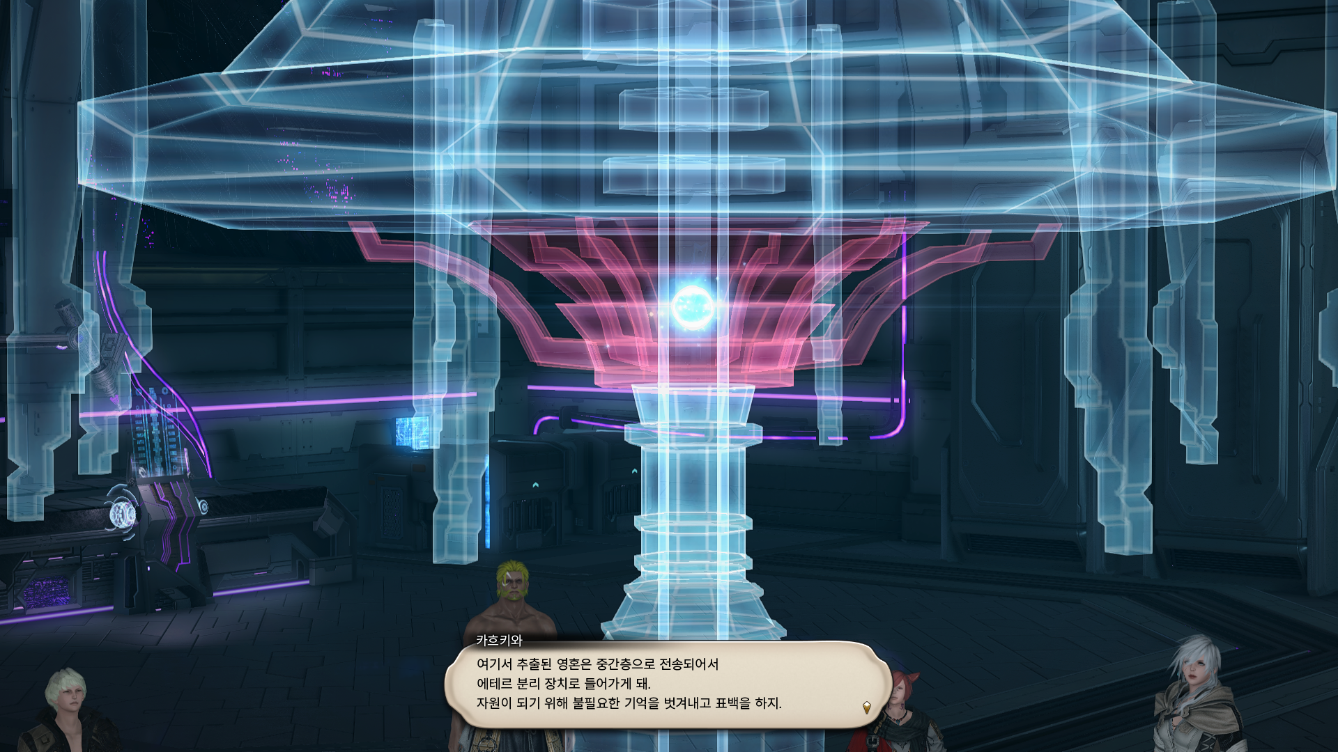 영혼을 모아 기억을 떼어 내고 보관하기까지의 과정을 알려주는 중.