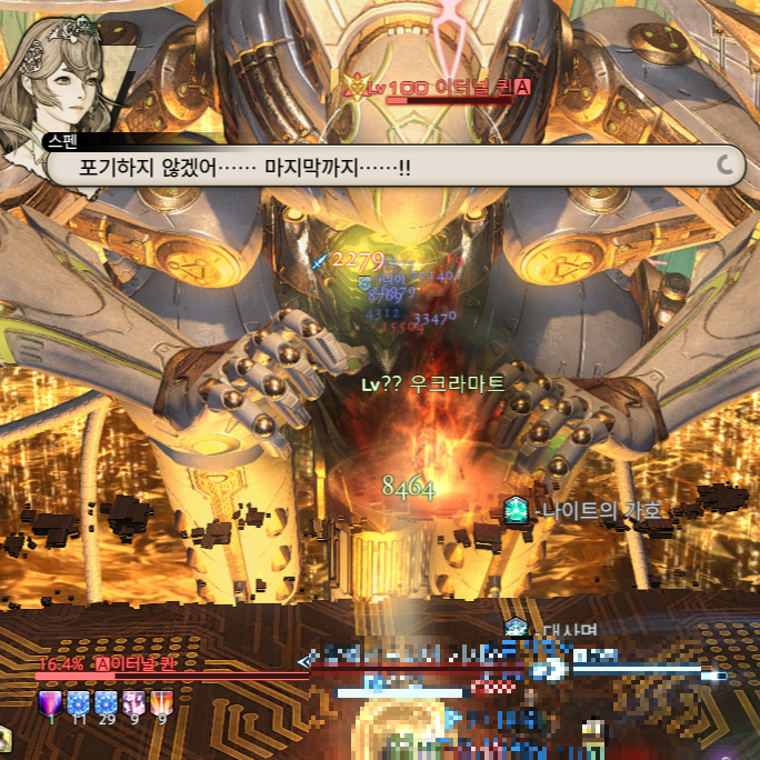그게 통했는지 어쩐지는 모르겠지만, 중간에 라마티가 리밋 같은 강공격을 한 번 뽱! 시전하니 이터널 퀸 피가 훅! 닳음.