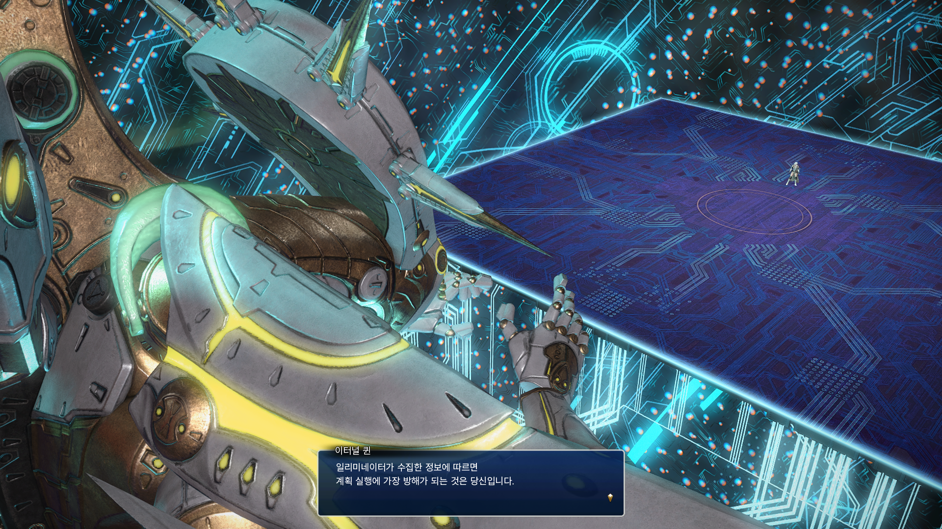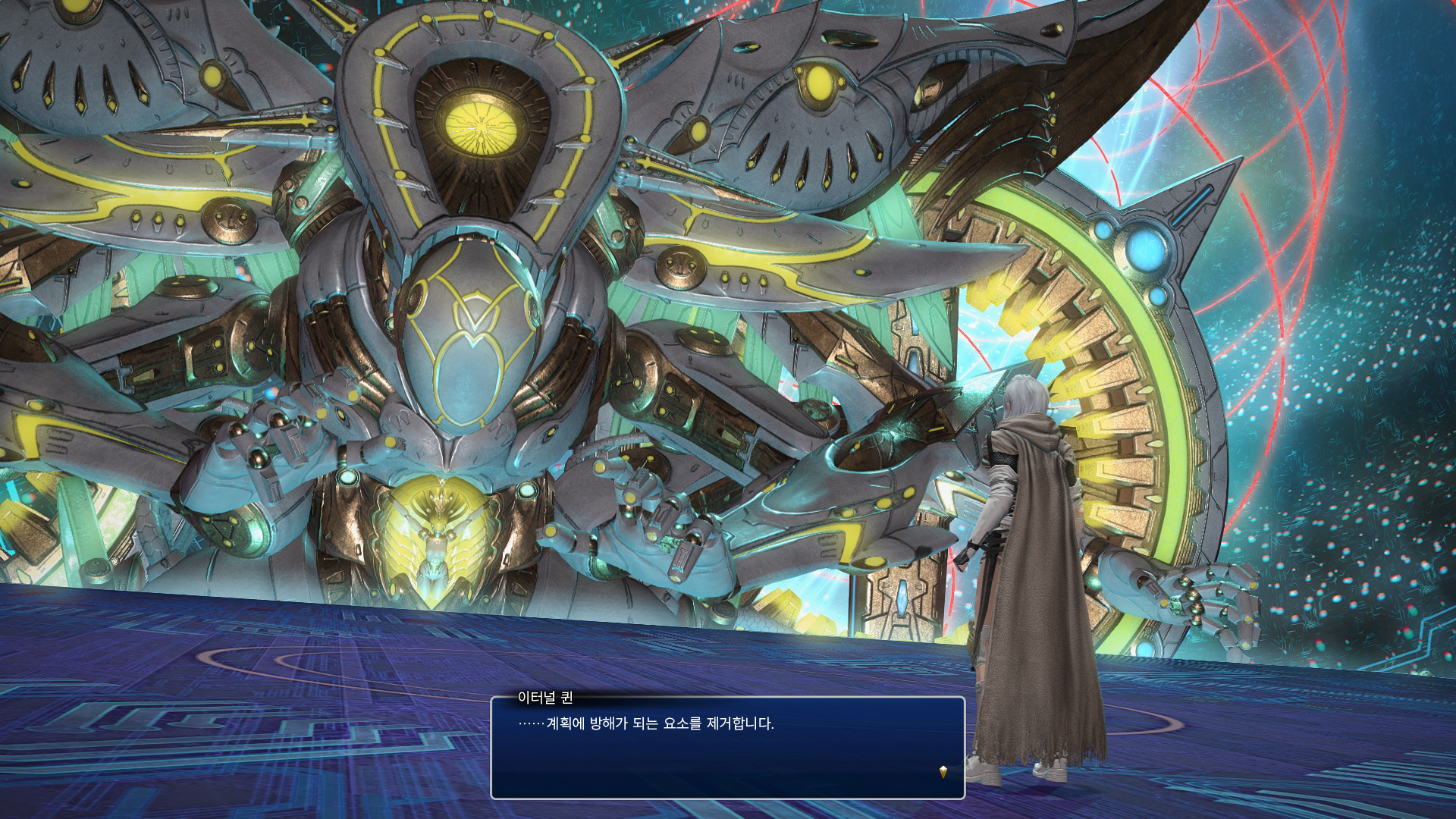 비로소 메인 터미널과 동기화를 이룰 수 있게 된 것 같다. (이터널 퀸 몸체 중앙에 완전한 기계가 된 스펜의 모습이 보인다.)