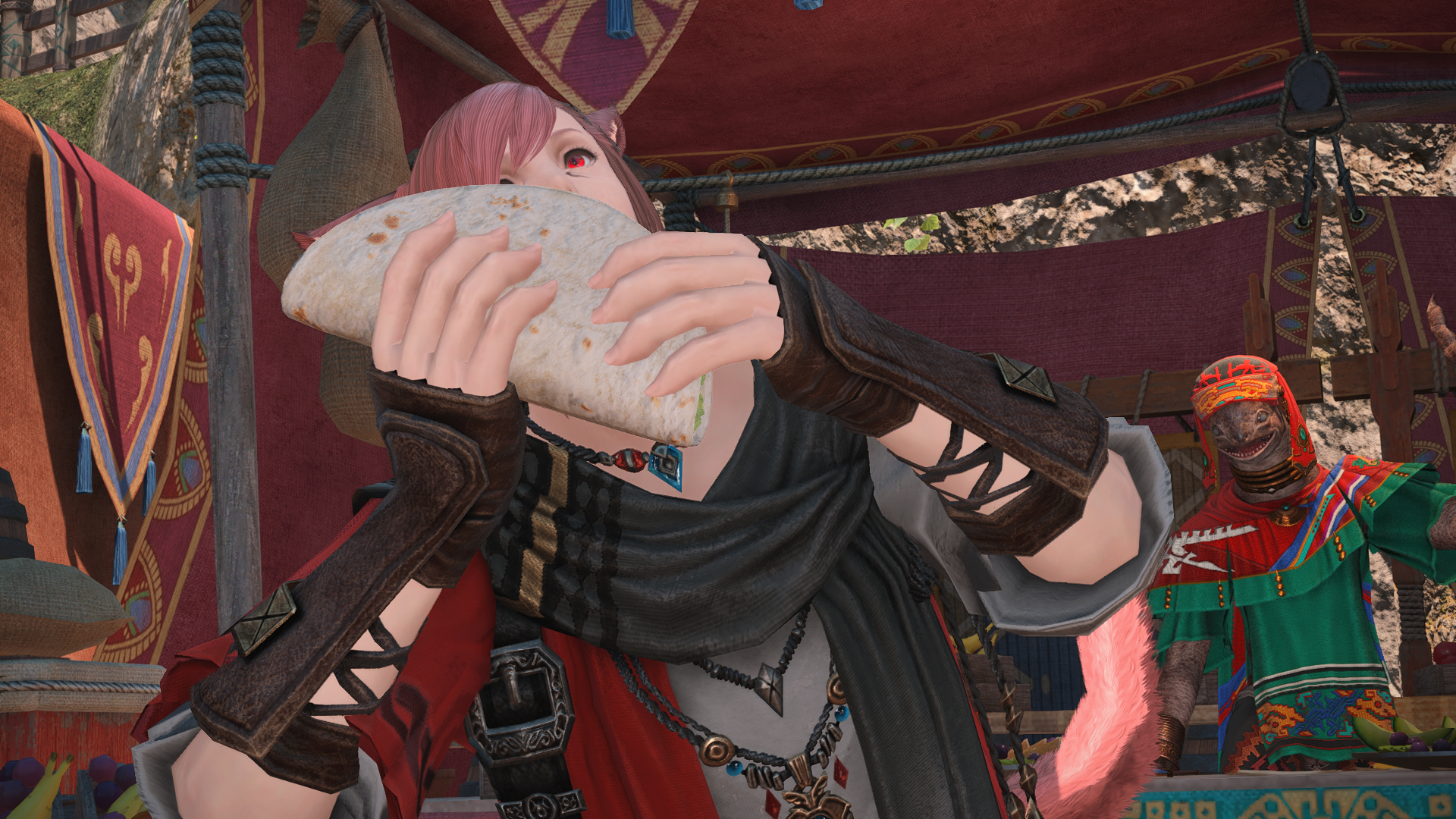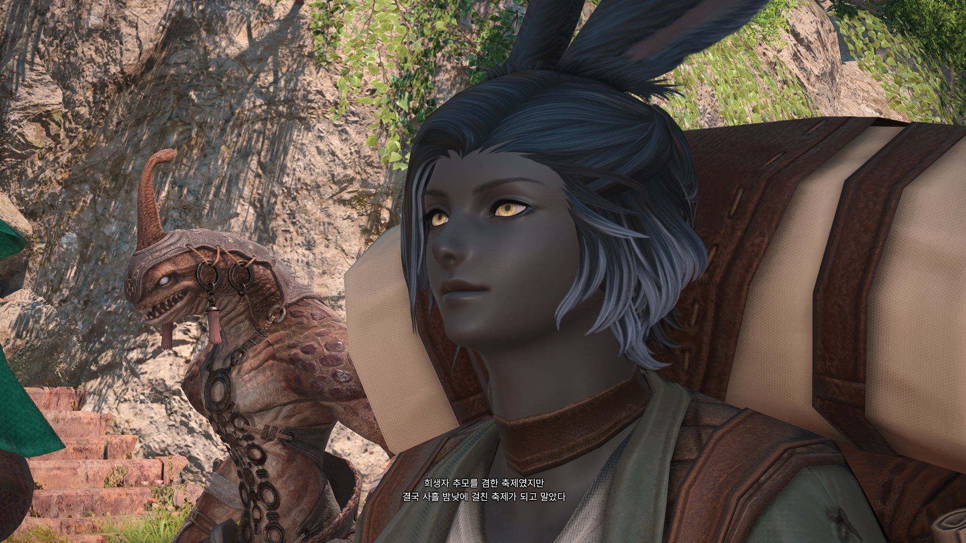 트레일러를 참고해서 생각하면 에스티니앙이 엄청 큰 마물 잡아다가 마무쟈족한테 고기 갖다줘서 애기들이 사냥 알려달라고 하는 건지ㅎㅎ